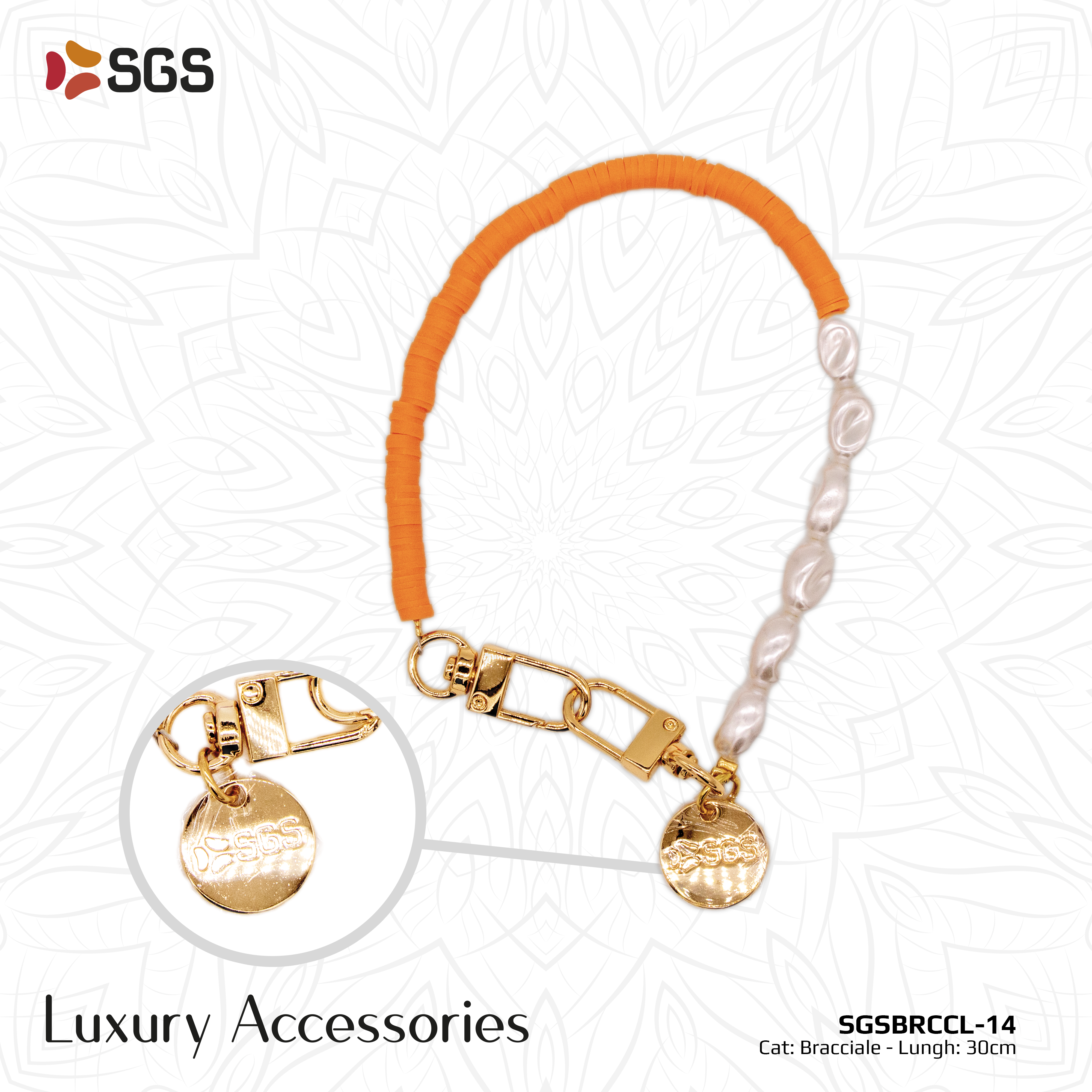 Bracciale 30 cm Cordino Arancione Pietre Bianche Per Smartphone