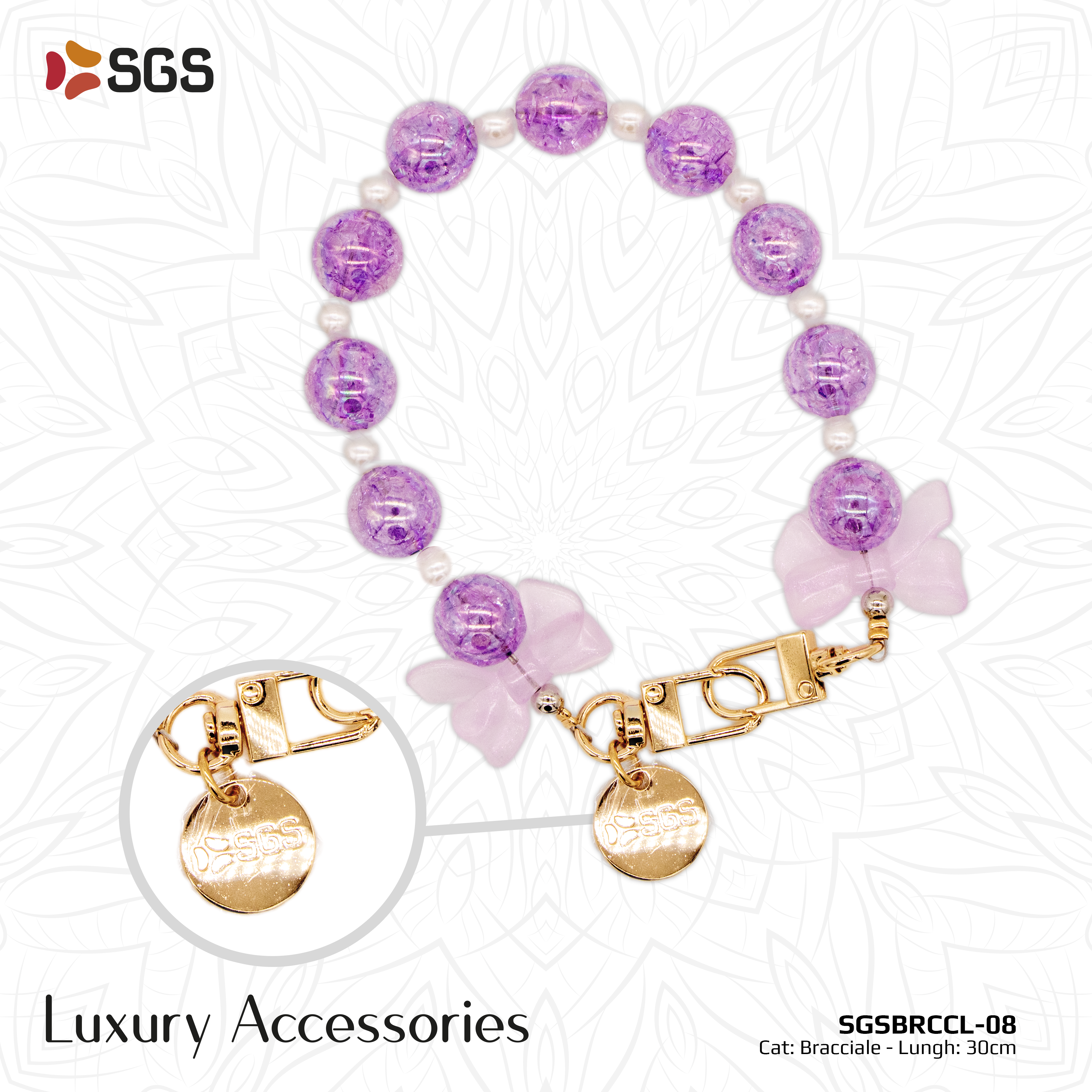 Bracciale 30 cm Pietre Rotonde Fiocchi Viola Per Smartphone