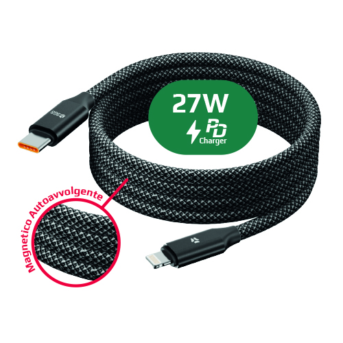 BRAID Cavo Magnetico PD27w Dati/Carica Typec/Lightning 1 Metro