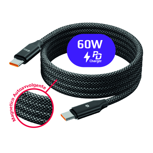 BRAID Cavo Magnetico PD60w Dati/Carica Typec/TypeC 1 Metro