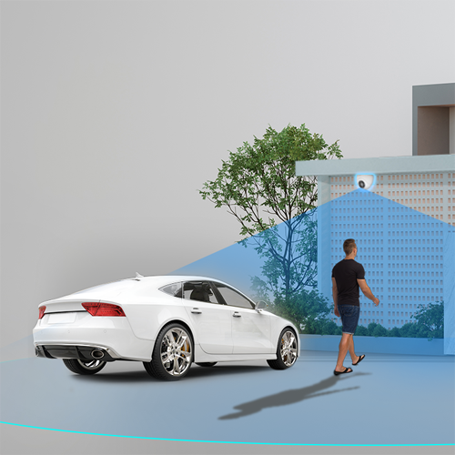 L'algoritmo di AI integrato nei circuiti della telecamera migliora il riconoscimento delle persone e dei veicoli in movimento. Inoltre, riduce gli allarmi attivati dalle foglie che cadono o dagli insetti volanti e segnala i parcheggi non autorizzati all'interno della tua proprietà.